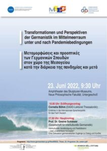 22. – 25. Juni 2022 Mittelmeer-Südeuropa-Germanistik (MSEG) Treffen in Thessaloniki Donnerstag, 23.06.2022, Amphitheater des Skulpturen-Museum, [...]