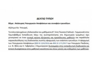 Στο επισυναπτόμενο αρχείο θα βρείτε τις αποφάσεις του Περιφερειακού Διευθυντή Εκπαίδευσης Δυτικής Μακεδονίας κυρίου Θοδωρή Μαρδίρη για τη διδασκαλία της 2ης ξένης γλώσσας στα [...]