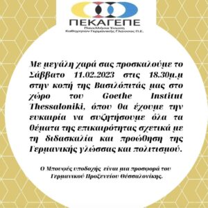 Το ΔΣ της ΠΕΚΑΓΕΠΕ σας προσκαλεί με ιδιαίτερη χαρά σε συνάντηση, το Σάββατο, 4/2/2023, στις [...]