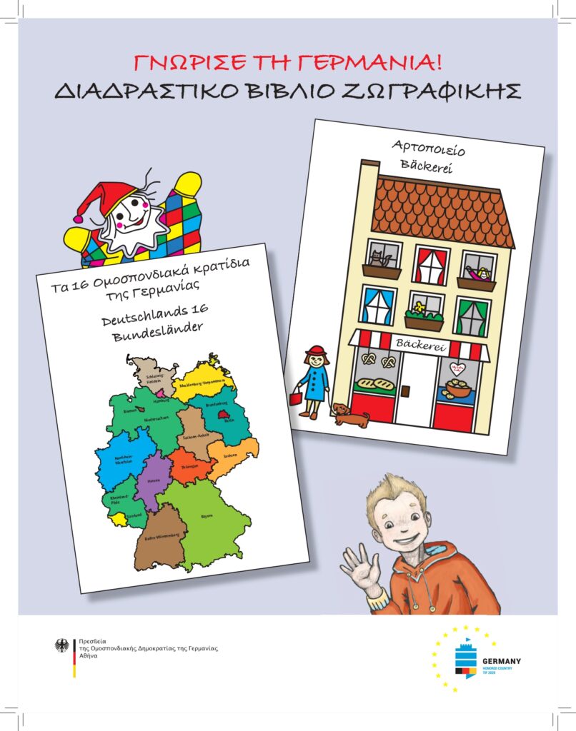 die Deutsche Botschaft Athen hat ein Deutschland Malbuch erstellt, das anlässlich der Ehrenlandbeteiligung Deutschlands an der Internationalen Messe Thessaloniki verteilt werden sollte. Da die Messe abgesagt wurde, haben wir aktuell noch zahlreiche Malbücher verfügbar. Sie finden das anbei.